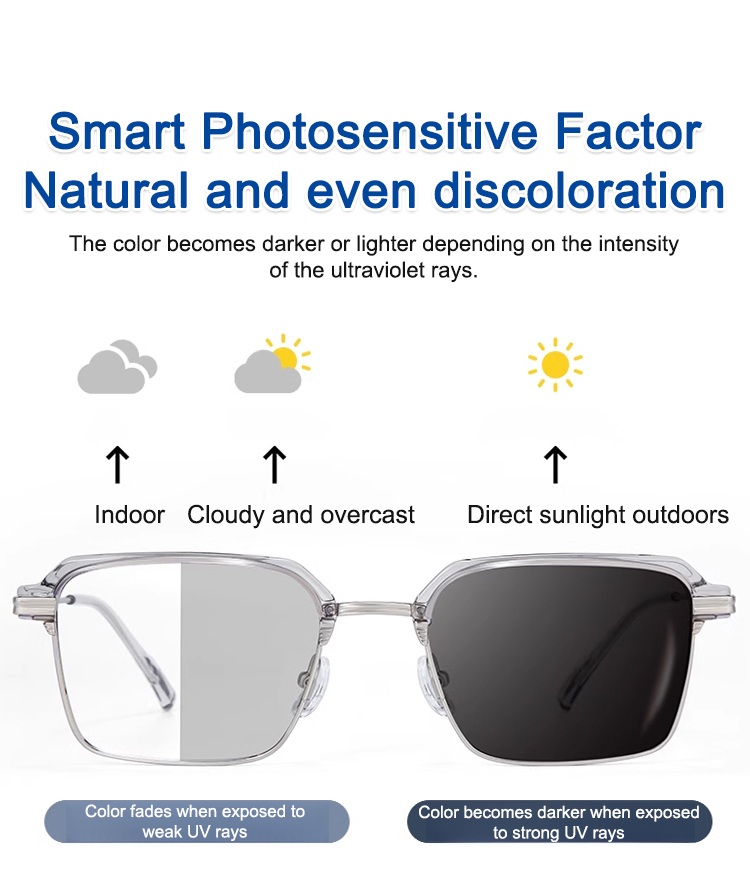 Automatic zoom light-sensitive color-changing blue light blocking reading glasses