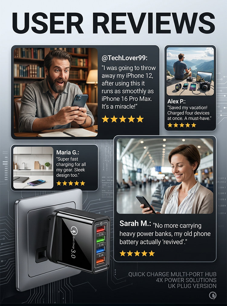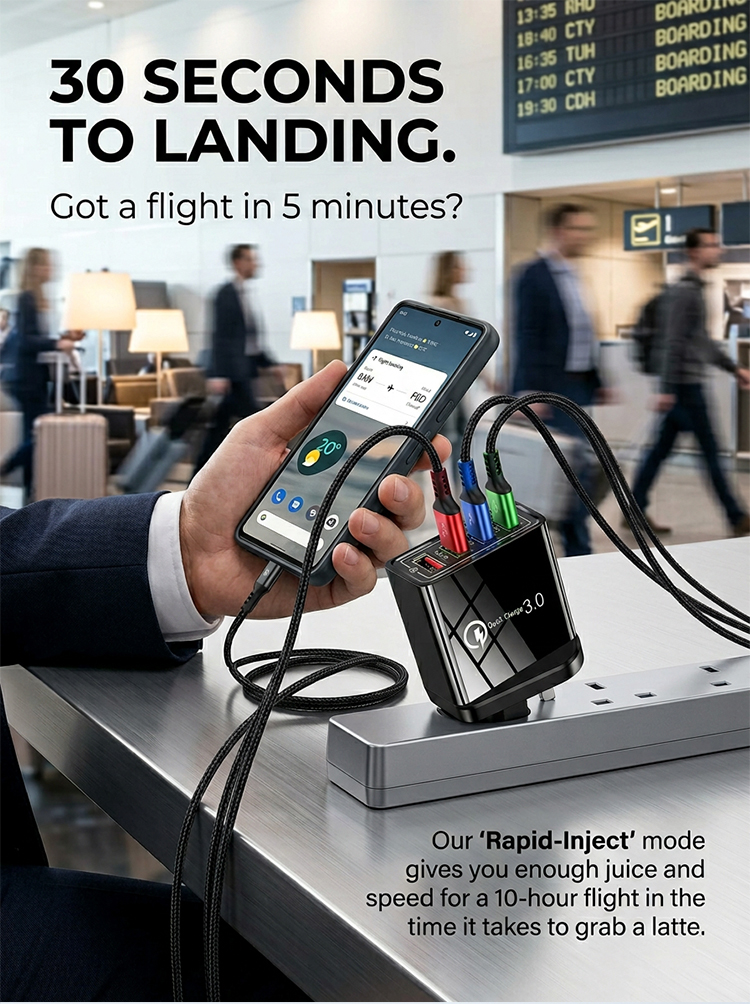 Four-Port Travel Charger for Extended Phone Battery Life